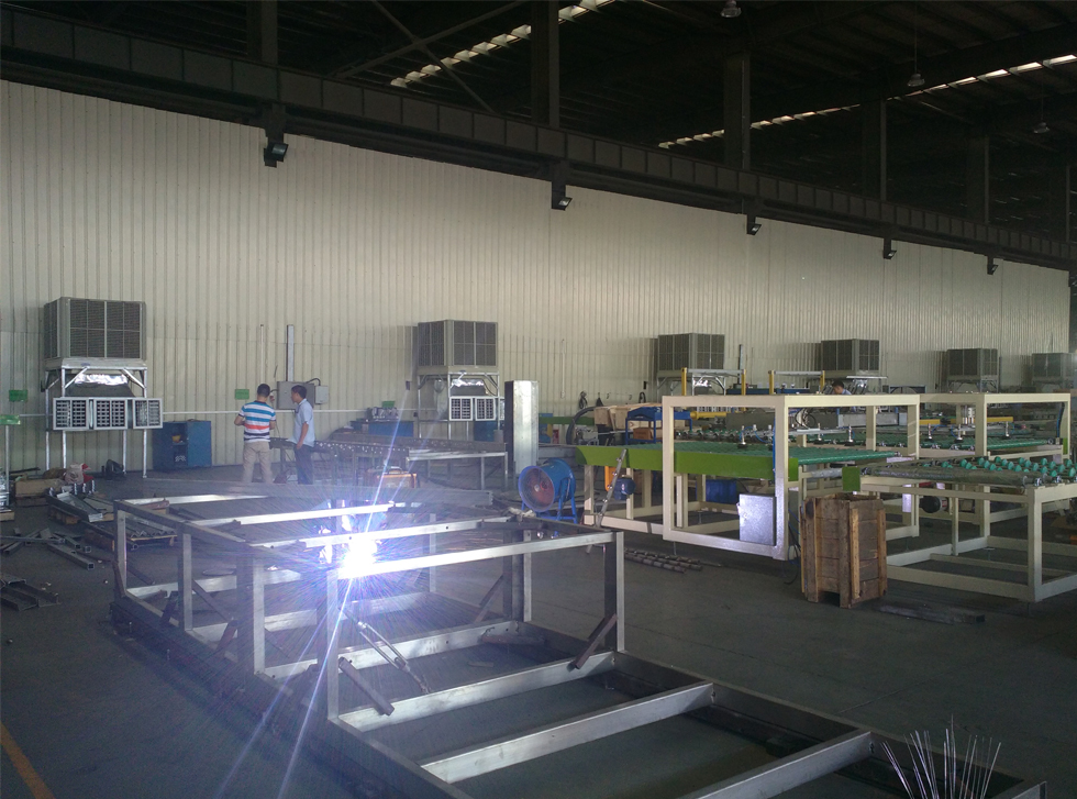 3、環(huán)保空調(diào)降溫迅速,采用大風量低噪音風葉,每臺機送風量大約18000m3/h,可迅速的排出車間內(nèi)的熱空氣,降低車間內(nèi)的溫度